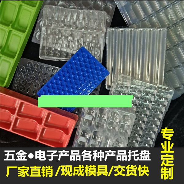 吸塑托盤是指采用吸塑成型工藝加工形成的一類塑料托盤,主要用于工業(yè)品,電子產(chǎn)品,食品包裝,厚度從0.2mm至2mm不等。按功能和材料不同分為:周轉(zhuǎn)托盤,抗靜電托盤,PS吸塑托盤等。
